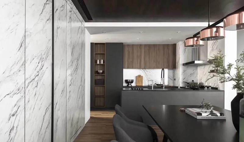 金屬裝飾能夠在廚房整體風格中起到點睛之筆,給人一種光澤感,自帶高貴雅致氣質與光芒。