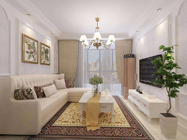 2、白色墻面搭配卡其色電視櫃,簡約的色調顯得溫馨又簡潔。再搭配一些金屬材質,整體氣質更顯得輕奢,極富品味,與室內裝潢風格相一致。