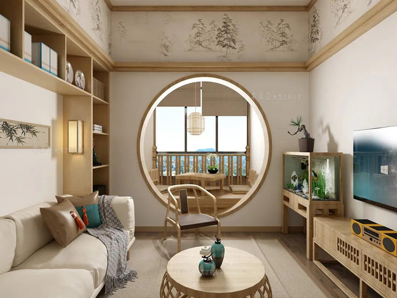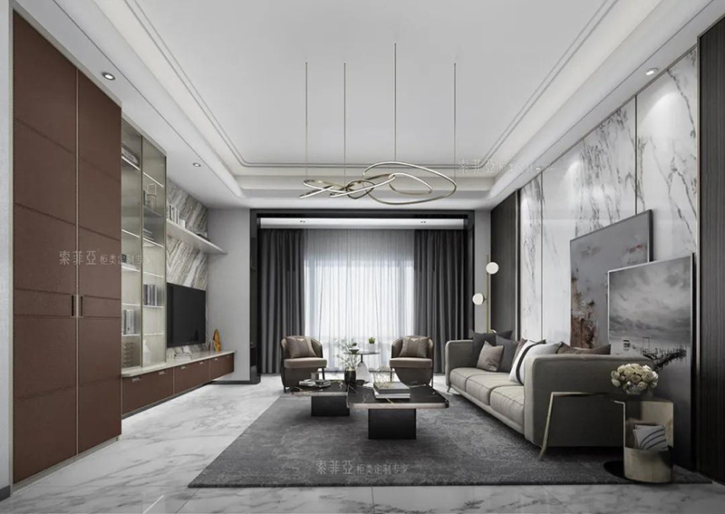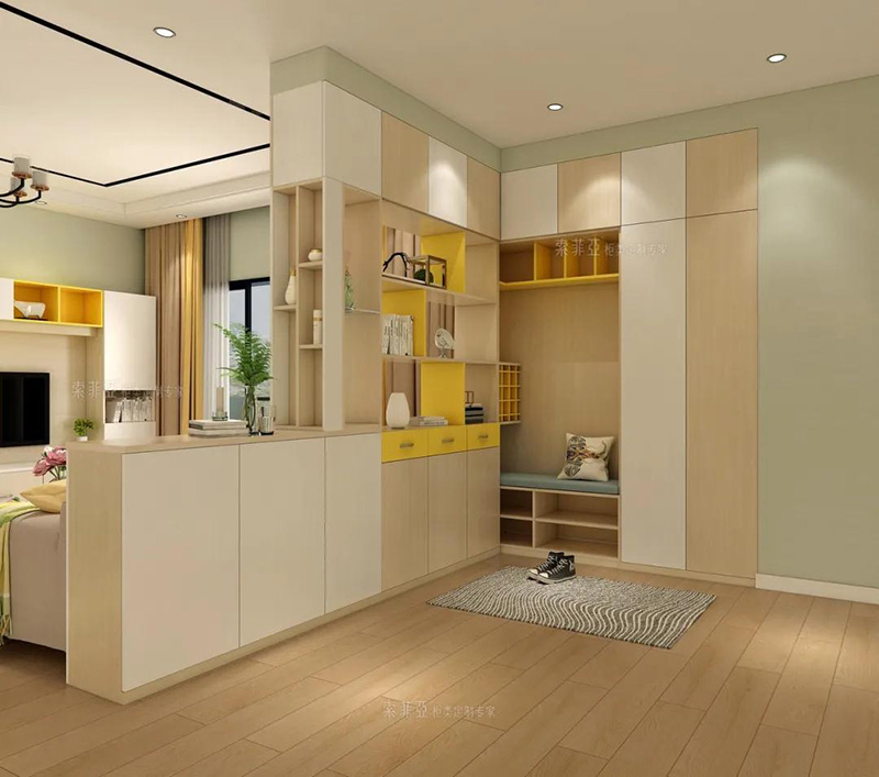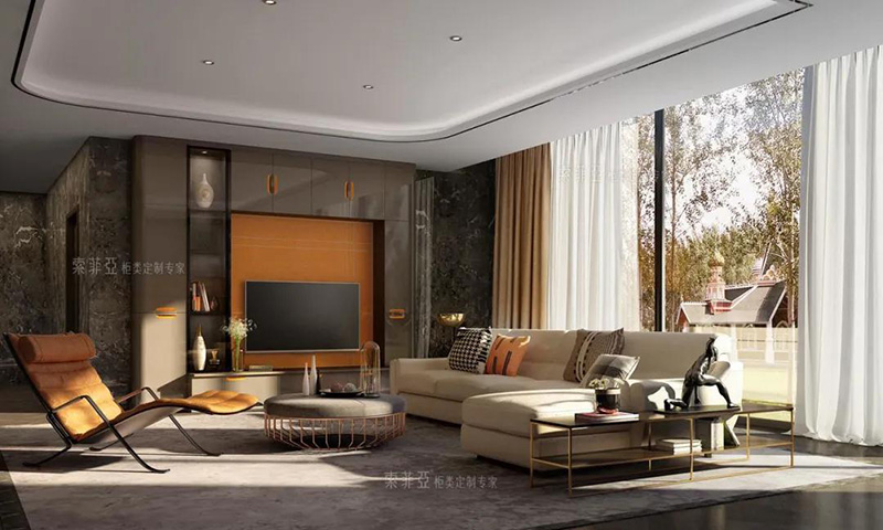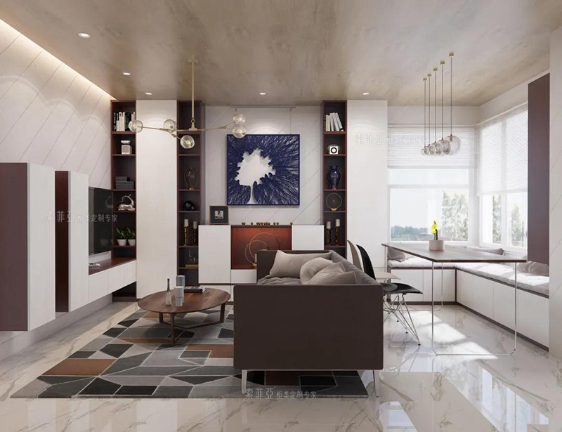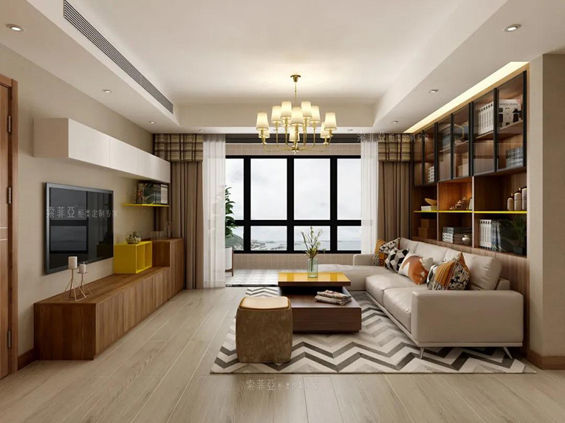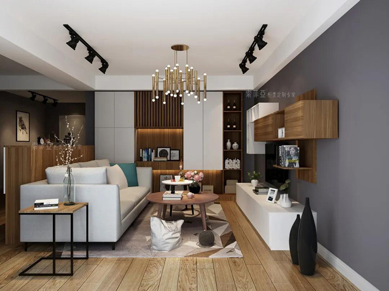 缺點:需要犧牲客廳約300mm的縱深且最好在硬裝過程中提前規劃,對客廳的形狀有一定要求,不太適合狹長型的客廳。