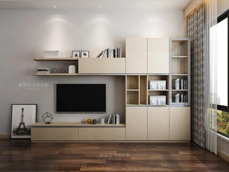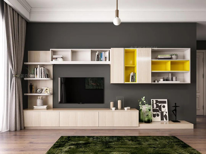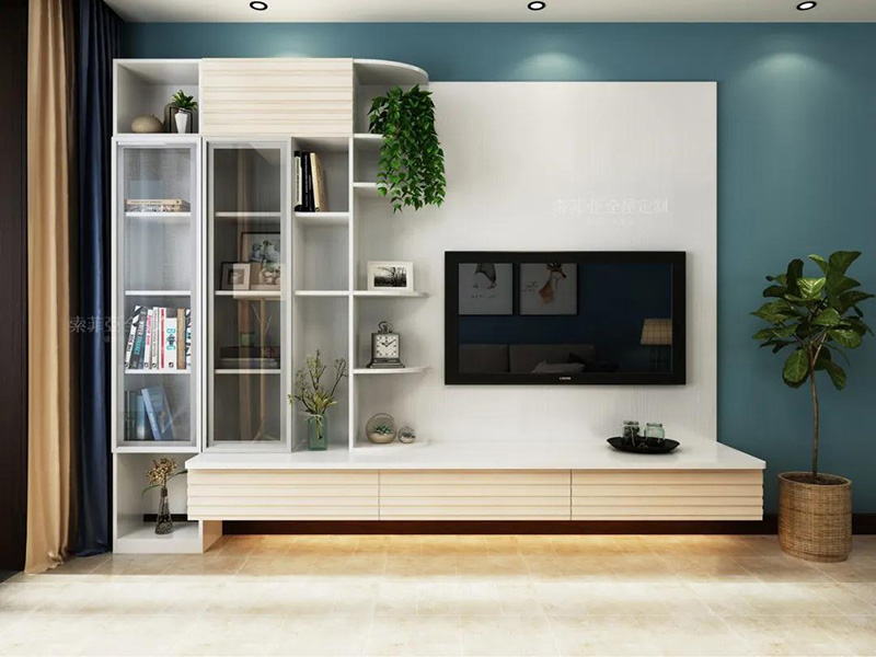 特點:側重集中式的單邊收納,適合電視背景墻較短的客廳