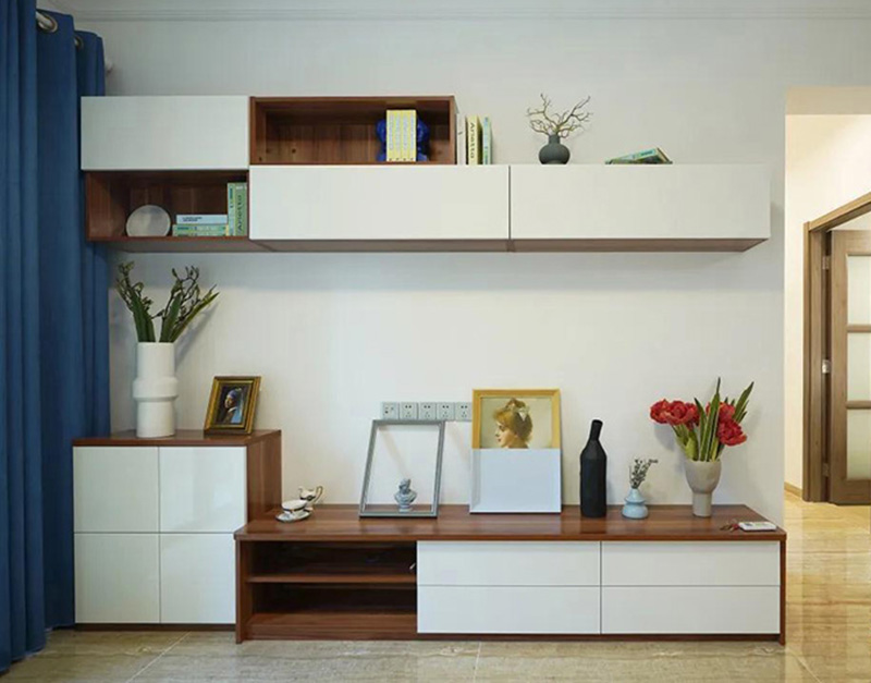 喜歡看書的朋友,開放格可設置多一些,電視櫃變身多功能書櫃,給客廳增添幾分書香氣。