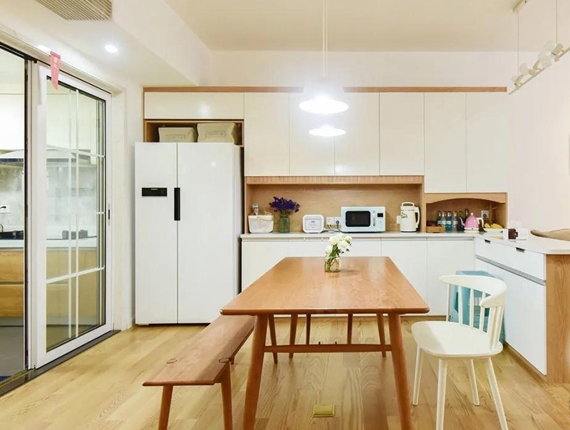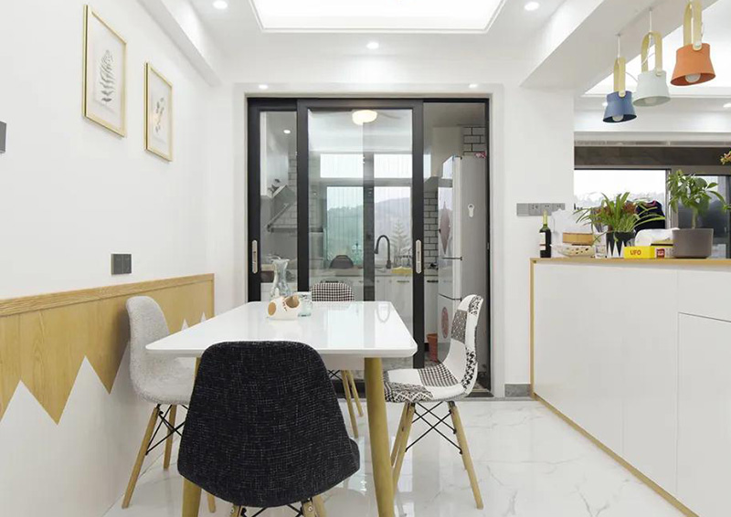 而且用做隔斷的矮櫃一定程度上還能充當餐邊櫃的作用,實用性滿分。
