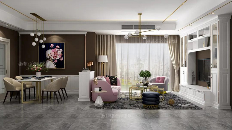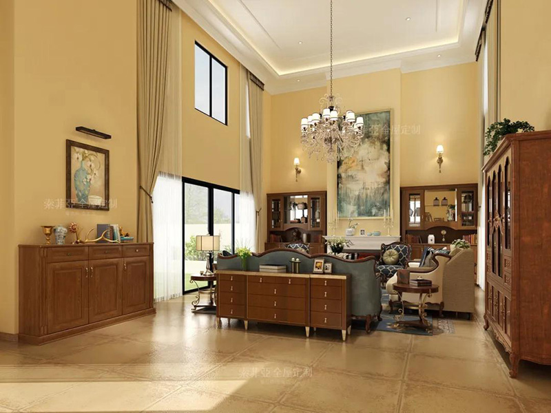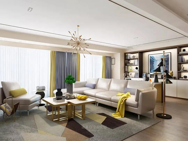 家具圍合擺放的布局,相對來說比較適合大戶型,能營造出較強的交流感,客廳氛圍濃厚。
