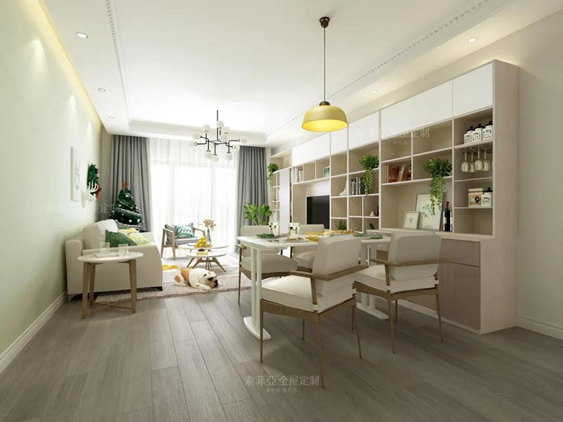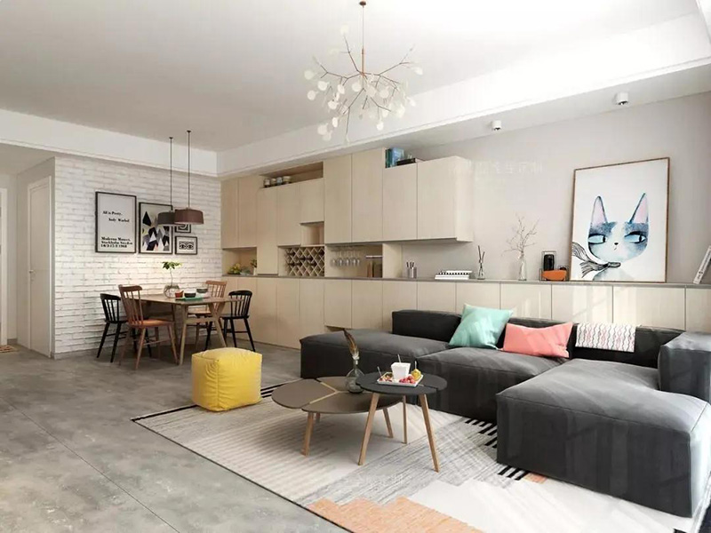 客餐廳相連的情況下,選擇用矮櫃隔斷可以保留空間的通透性,也避免了客廳太小、櫃子太多給我們帶來的視覺壓抑感。