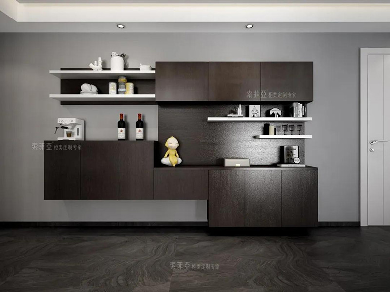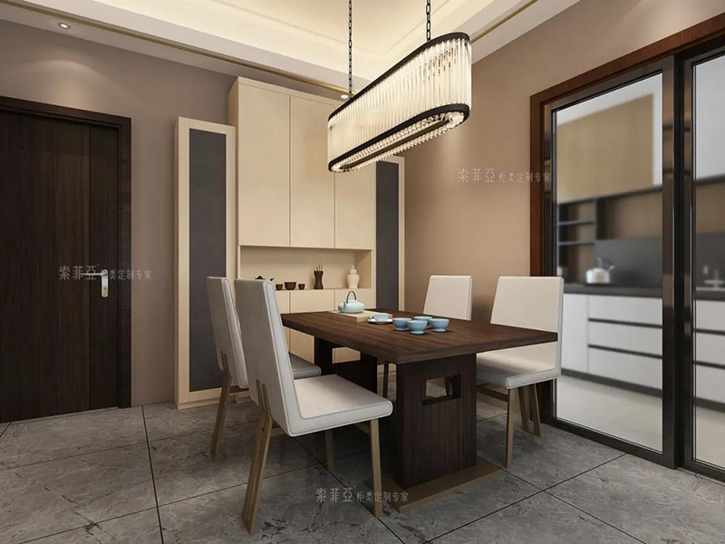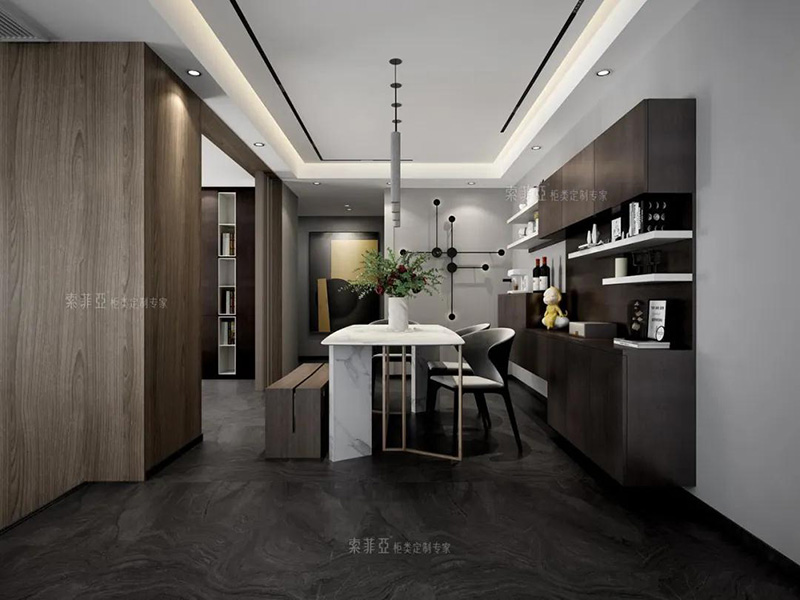▲餐廳邊的餐邊櫃造型別致,內斂又大氣