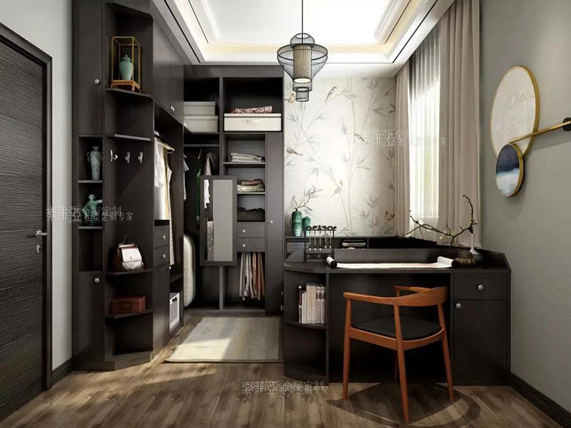 甚至還能結合衣櫃一起使用,連帶衣帽間的功能也給實現了。