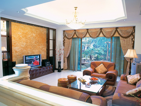 可以用家具來裝飾飄窗,比如說將客廳飄窗臺面設計成榻榻米造型,這樣榻榻米不僅可以緊挨著窗戶,還能將飄窗變成儲物性能出色的榻榻米床,充分利用了房間的空間。在飄窗的周邊我們可以放置一個書架或展覽櫃,書架上放上幾本書,順便再擺上一盞別致的小燈作為裝飾。