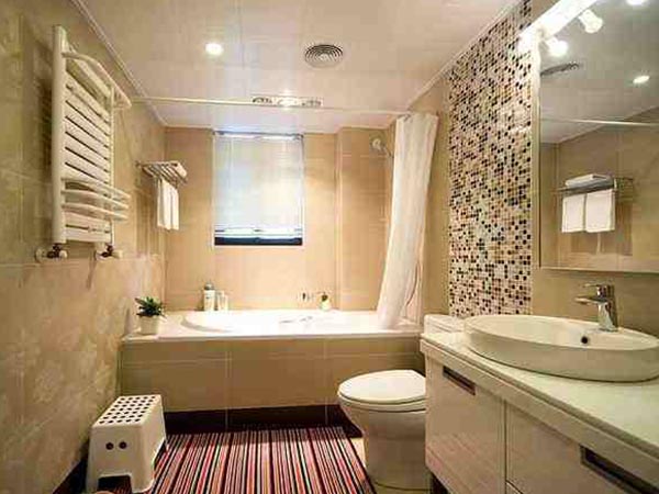 吊頂的材料也是要具備防水的功能,因為沐浴時會產生水汽然后蒸發到吊頂上面,如果使用的不防水材料,那么時間長了就會出現發霉、變形等一些現象。可以選用鋁塑板或者鋁扣板,鋁塑板比較經濟實惠,但比較容易變形。鋁扣板安裝非常方便,也很耐用。