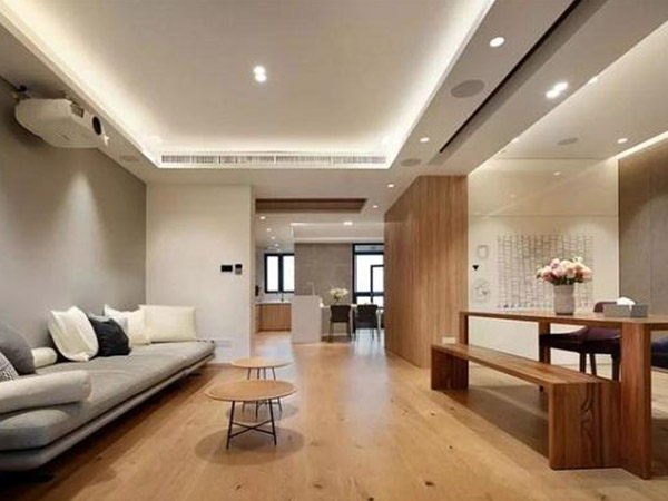 客廳經常人來人往,比較臟,有時喝茶、澆花會濕地,拖把也是濕的,所以不要用木地板。