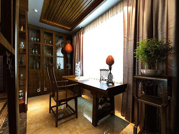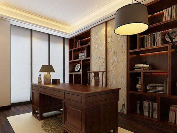 新中式風格的書房裝潢,同樣需要用到木質的家具,包括:書桌椅、書櫃、收藏架等,而木質家具的特點就是環保。