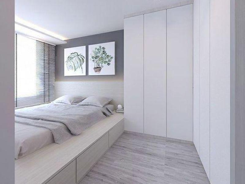 4、如果上面要鋪藺草墊子的話,上翻門板其實也可以考慮做成“排骨架”,就類似有些床架,這樣不僅節省預算,通風性還更好一些。