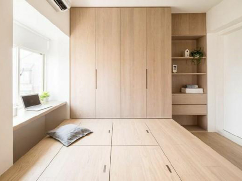 對于一些小戶型的房間來說,將房間鋪滿榻榻米相當于增加了額外的置物空間,而再加上客製化的衣櫃,將其升級為衣帽間,其置物空間就加倍的增多,非常幸福。