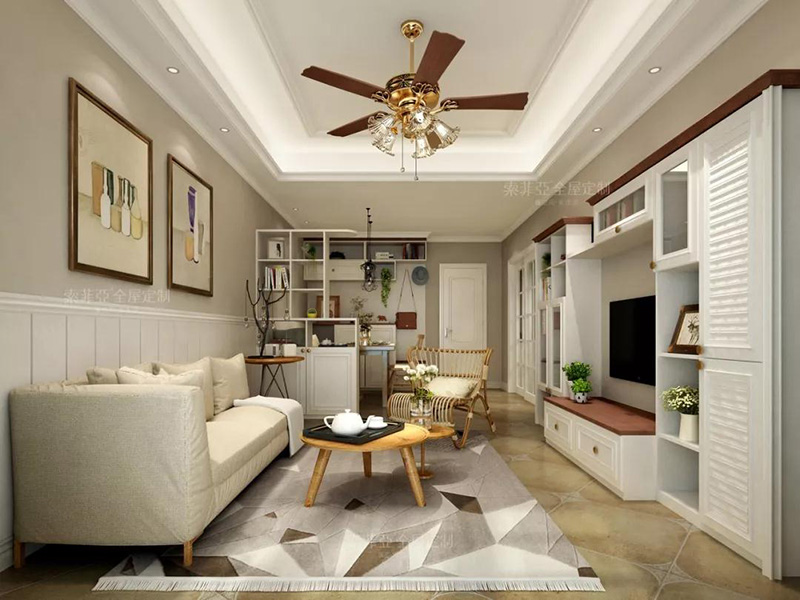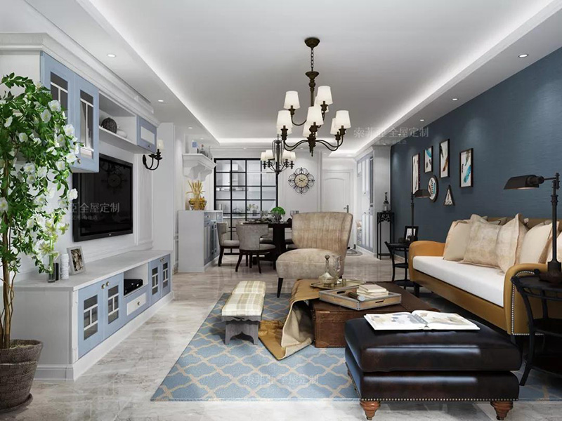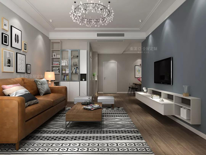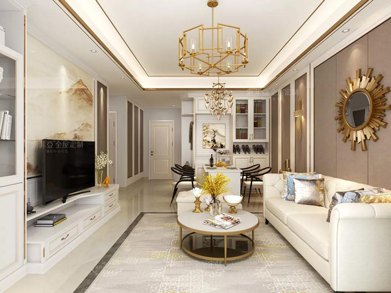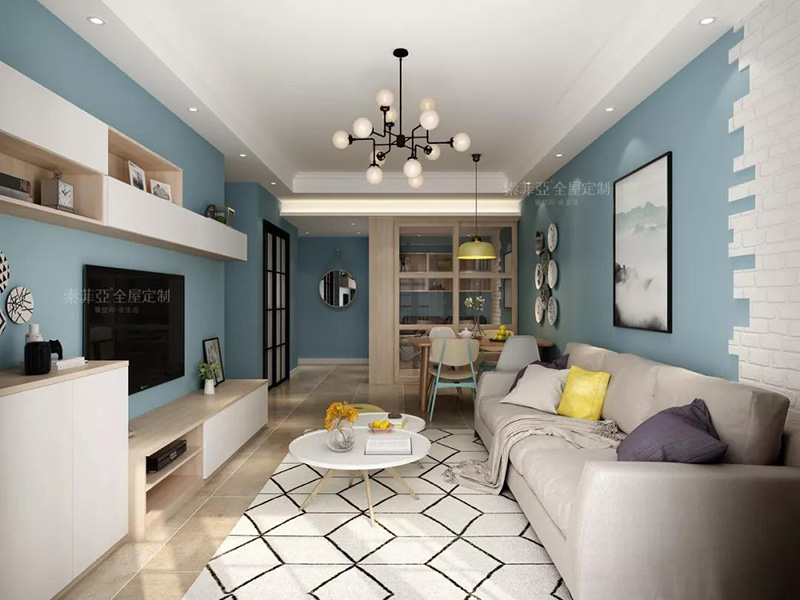 所以半墻當隔斷就非常合適,既起到隔斷作用,還不會因空間封閉帶來壓抑感,而隔斷墻上也能做一些裝飾設計,讓客廳更加美觀。
