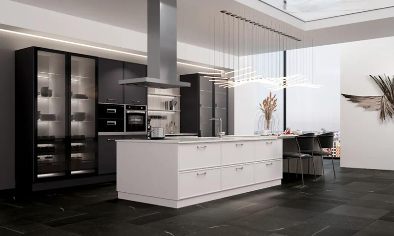 莫赫櫥櫃,設計了高低錯落的島臺,讓廚房空間整體更加別致。