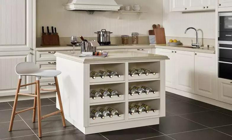 將島臺下方做成抽屜式收納,增加島臺的收納功能。