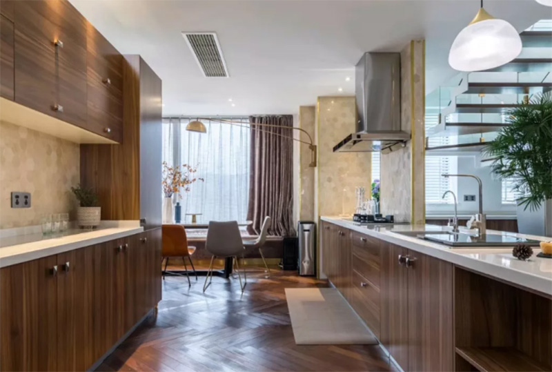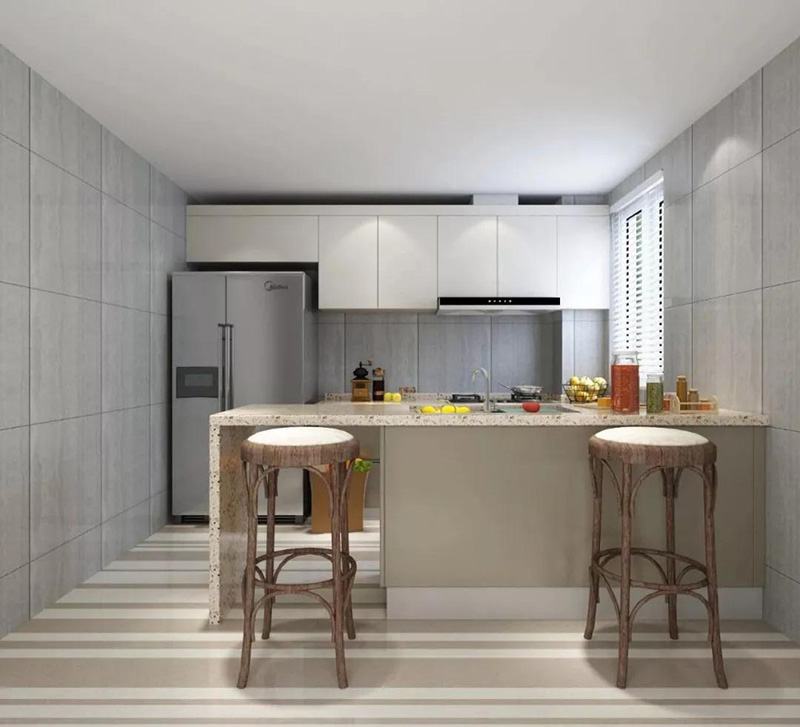 有西廚的小伙伴,也可以將冰箱放西廚,可以減少衛生的死角,將獨立冰箱嵌入到櫃體中,需要注意冰箱與櫥櫃的尺寸,冰箱和櫥櫃最好選擇同色系的,這樣整體會更和諧美觀。