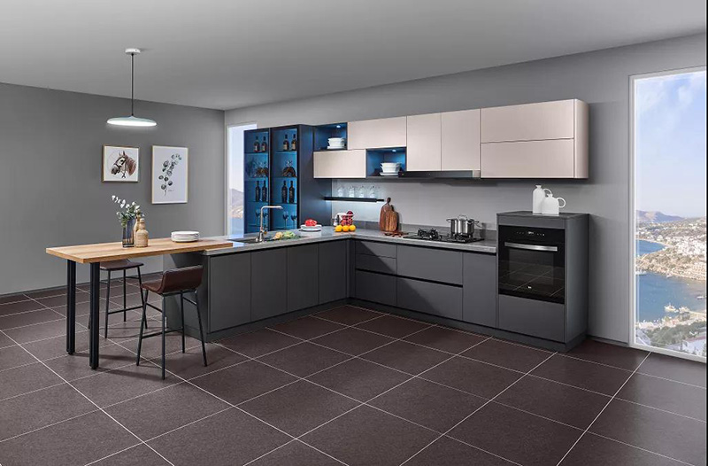 艾克斯櫥櫃創新應用天然云母鈦珠光工藝,給櫥櫃賦予一層珠光,以靈動簡約的設計,開啟愜意優雅的廚房空間。
