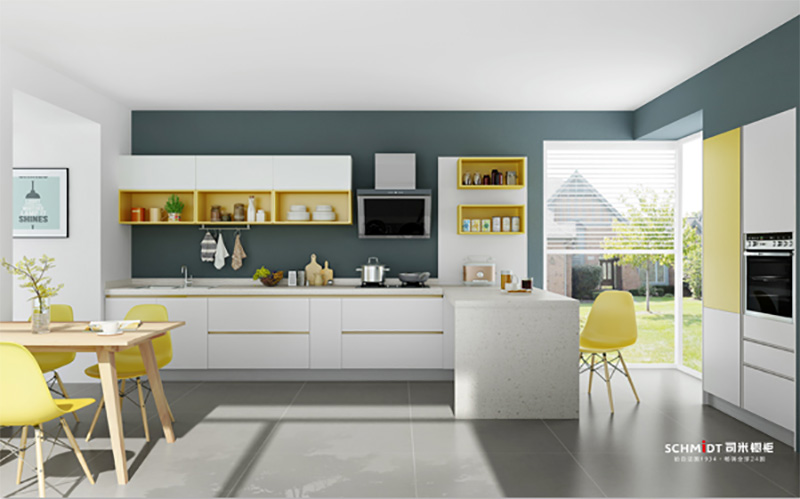 黃色作為2021年流行色,用在廚房里能夠起到畫龍點睛的作用,給人一種春意盎然的感覺,下廚用餐的心情都變好了。