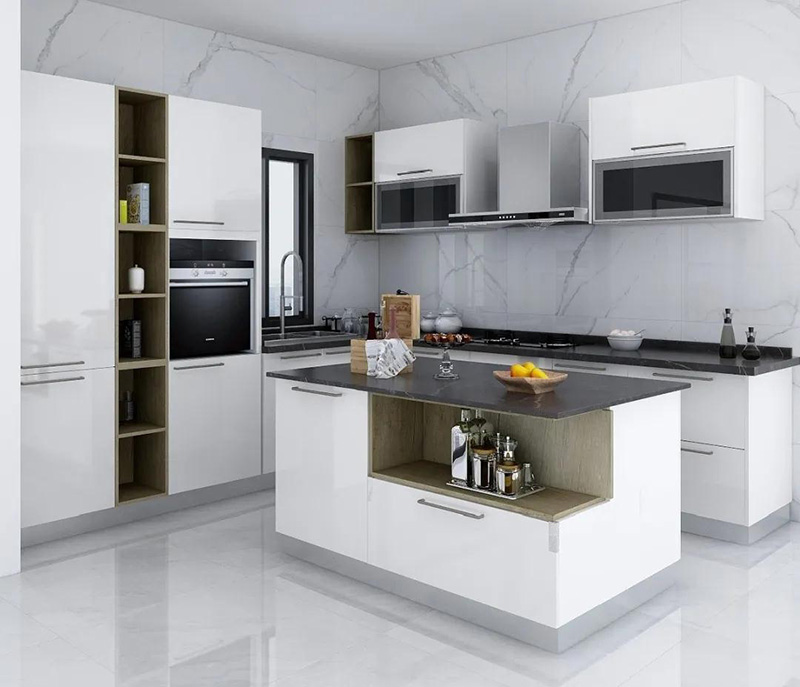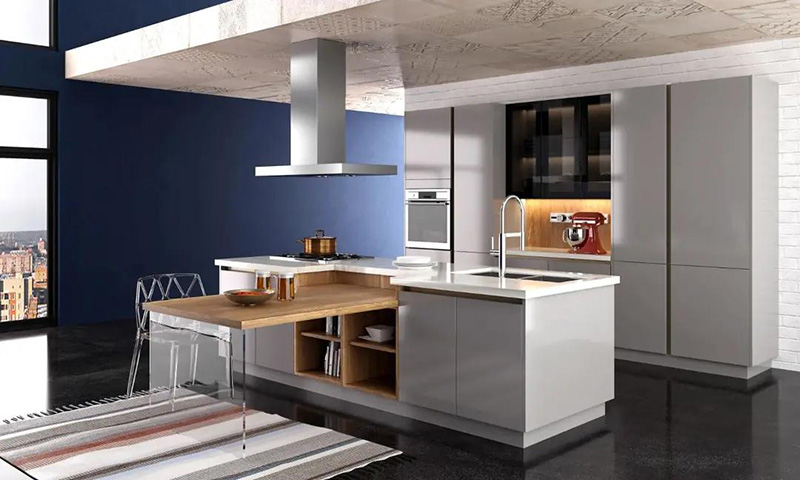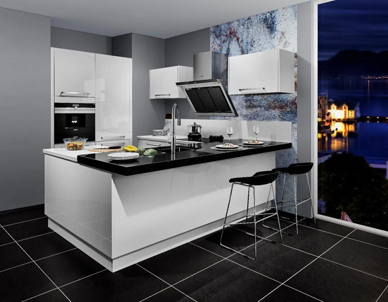 L型廚房+餐臺的設計可以形成一個親密的開放式交流空間,增加一家人的互動,弱化廚房的封閉性,營造出一家人其樂融融的氛圍。