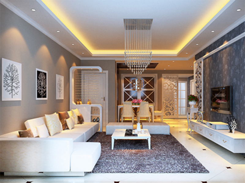 4.如果家里的光線比較暗的話,對人的身心會造成一定的傷害,不過不必擔心,我們可以利用吊頂來彌補室內採光的不足。我們可以在客廳吊頂的四邊木槽中暗藏日光燈來加以彌補。光線從天花板折射出來不會刺眼,而日光燈所發出的光線最接近太陽光,對于採光不足的客廳而言最為適合。