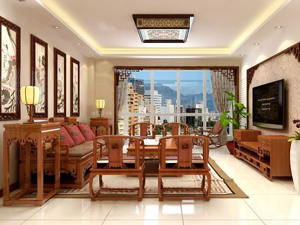 客廳中的家具及陳設,可以根據個人的愛好來選擇,但必須注意風格的統一性,如采用中式的椅子、茶幾、花架等,並在墻上掛置適當的字畫,就可以創造出一個中式風味非常濃厚的空間;而現代風格的客廳一般采用新穎別致的沙發、茶幾、椅子等家具,以∩形或L形組合,圍合出一個供人們親切交談的空間,同時在配置一些組合櫃、博古架等兼有儲藏、裝飾功能的家具。