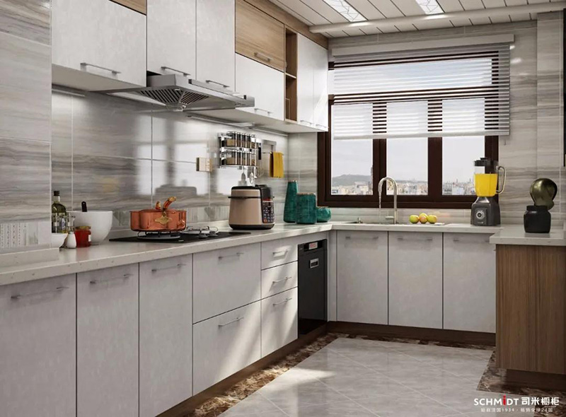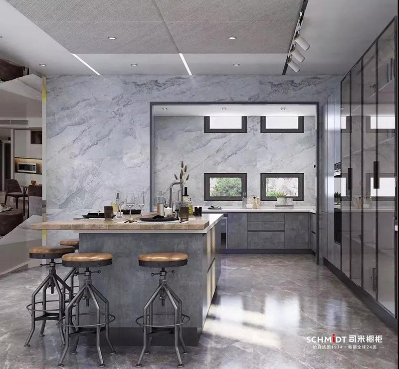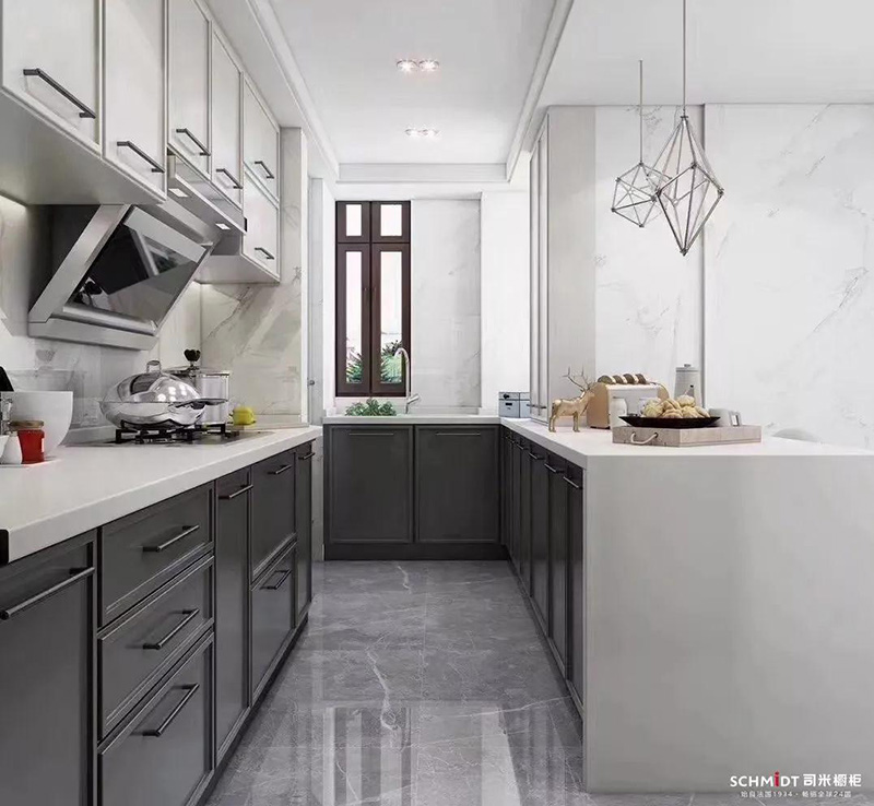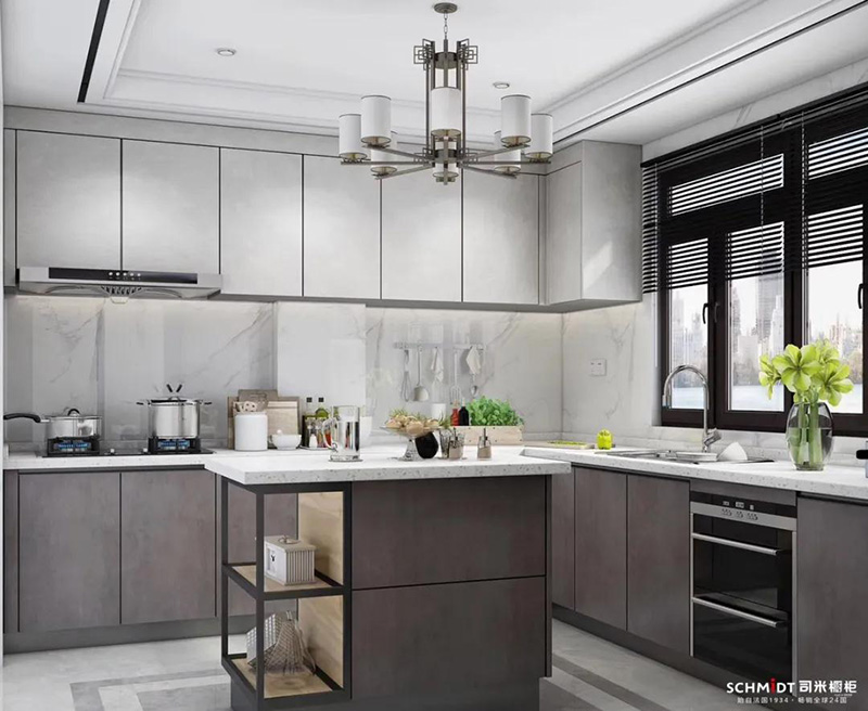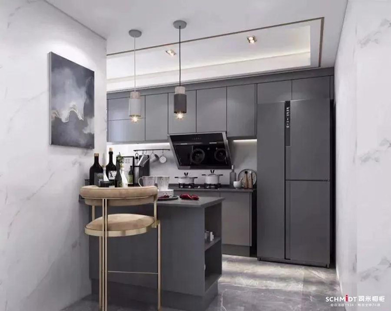 作為熱門的中性顏色,在廚房里使用灰色,能讓L型廚房顯得更加舒適。
