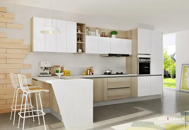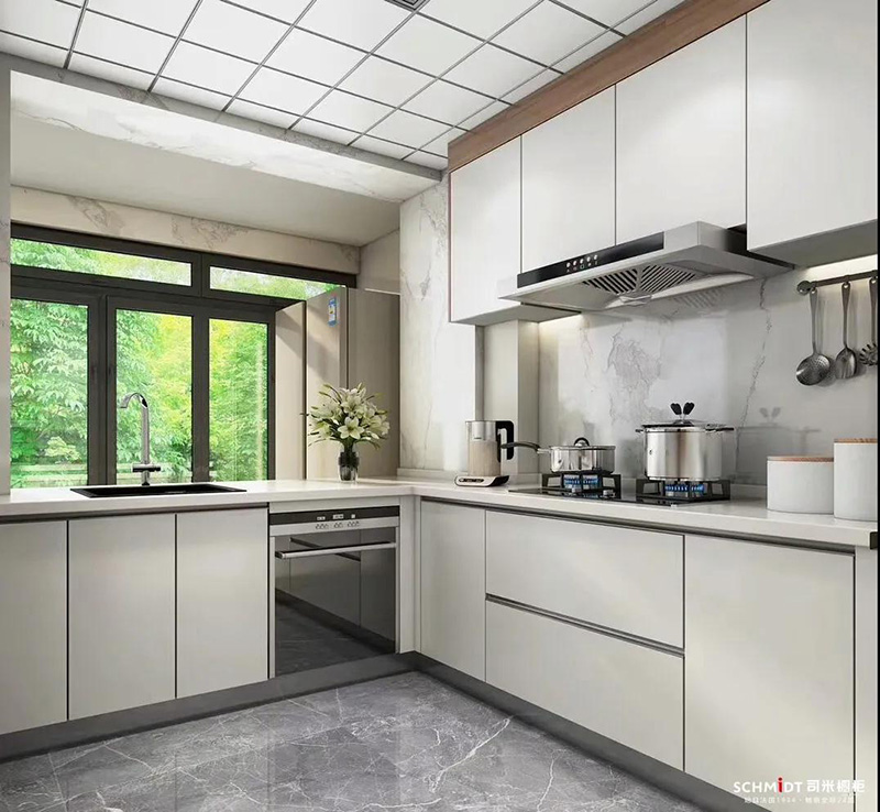 白色空間給人一種通透純凈的感覺,在L型廚房里使用白色視覺上不壓抑,顯得更明亮寬敞。
