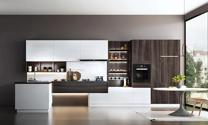 原木與輕奢風的碰撞,能夠讓廚房看起來輕奢高級的同時,又不缺乏原木的天然美感,拉近生活與自然的距離。