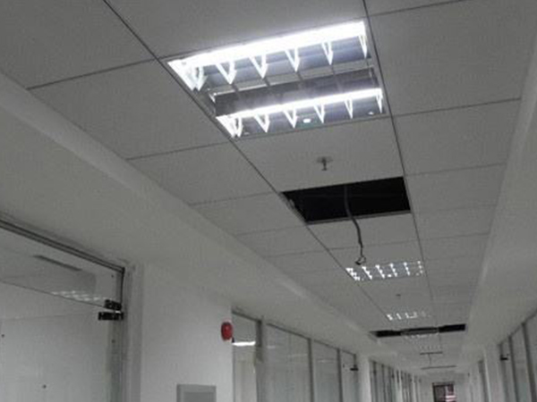 6、安裝礦棉板、飾面板:礦棉板的規格、厚度應根據具體的設計要求確定,一般為600*600*15。安裝礦棉板時操作工人須戴白手套,以免造成污染。礦棉板選用認可的規格形式,明龍骨礦棉板則直接搭在T型烤漆龍骨上即可。