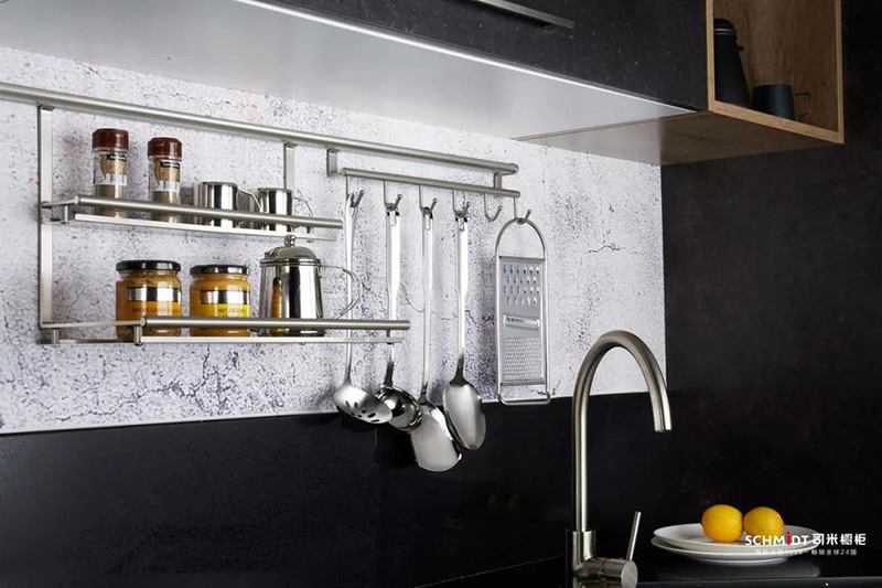 在廚房的墻面上可以多使用不銹鋼掛件,成本低,結構簡單,安裝便捷,還具有耐污、易清潔的特點,非常適合在廚房使用。