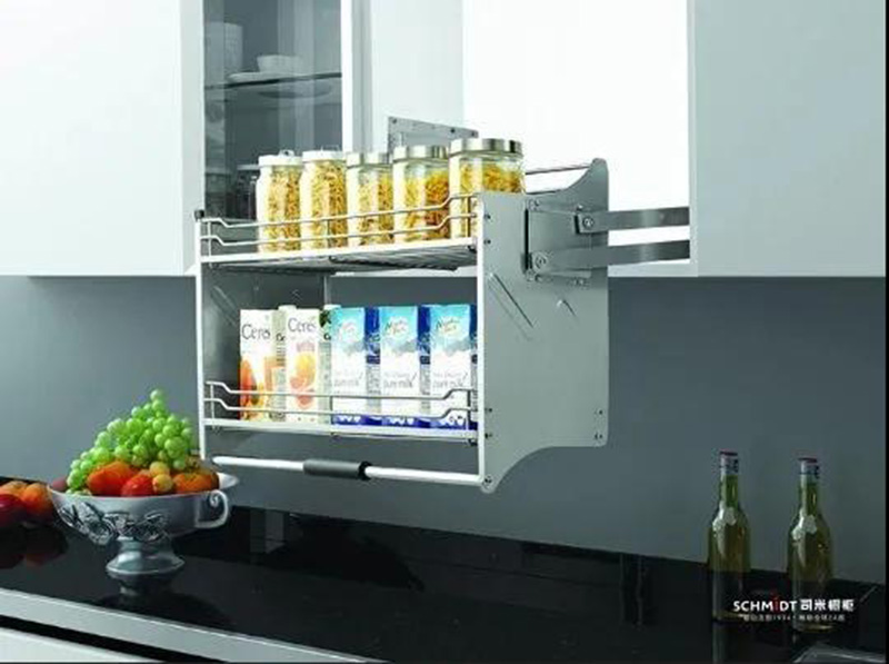 吊櫃置于比較高的地方,對于身材矮小的煮婦來說拿取上方的物品會比較難,設計升降拉籃就可以解決身高差的問題,輕松拿取高處物品。