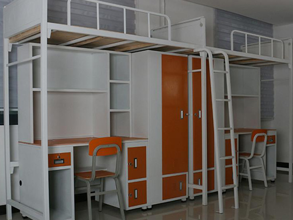 1.接下來這款大學生宿舍床,立柱:采用鋼管38*38方管。橫梁:采用50*25扁管。鐵床部份焊接采用二氫化碳保護焊接,鋼管表面經除油,去銹,磷化后防靜電噴粉、高溫固化而成。該款大學生宿舍床經去銹噴粉,高溫固化制成,不易脫漆生銹。焊接采用二氫化碳氣體保護焊接,使該款大學生宿舍床床更加美觀、耐用、扎實。該款大學生宿舍床尺寸為1000mm*2000mm。