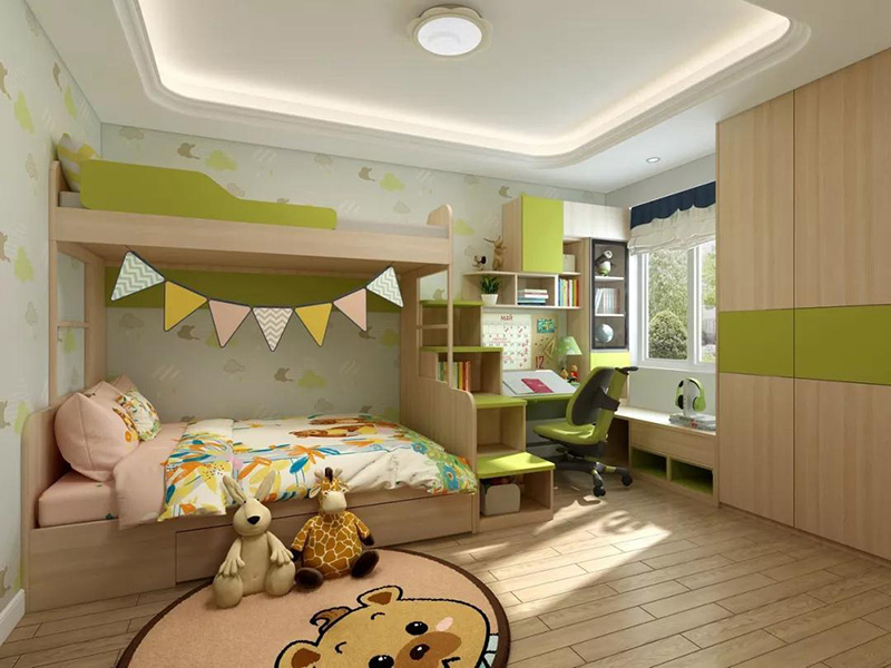 在書桌旁邊,不妨考慮設計飄窗櫃,一來可以利用空間來儲物;二來也可以當做父母的伴讀區,在孩子做功課時進行陪伴、教育。(注:兒童房飄窗設計一定要注意安全問題)