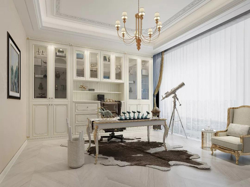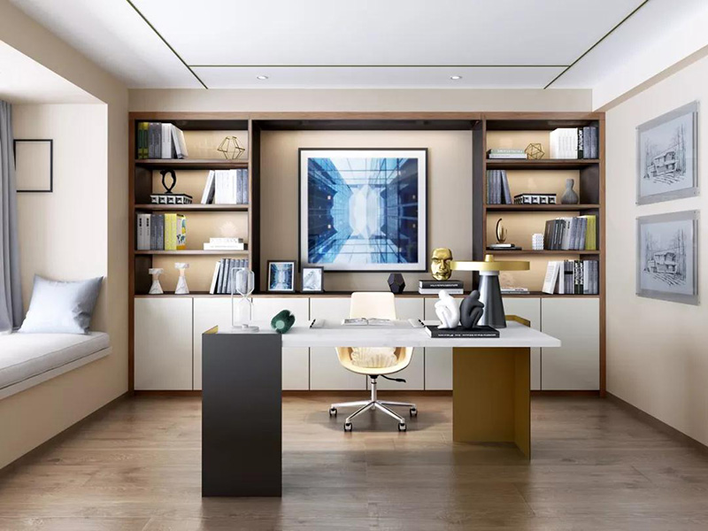如果家中戶型是房間少且面積小、客廳面積略大的話,那么用戶可以考慮把客廳與書房相互融合的設計。