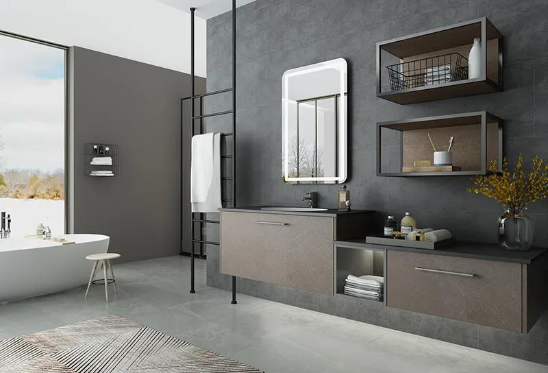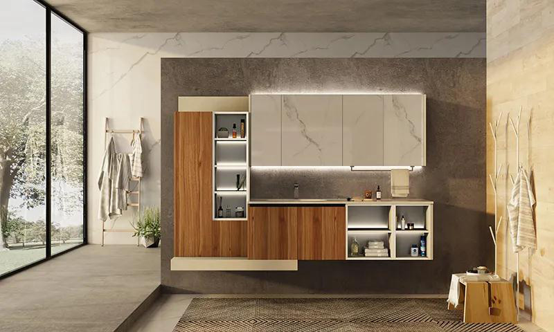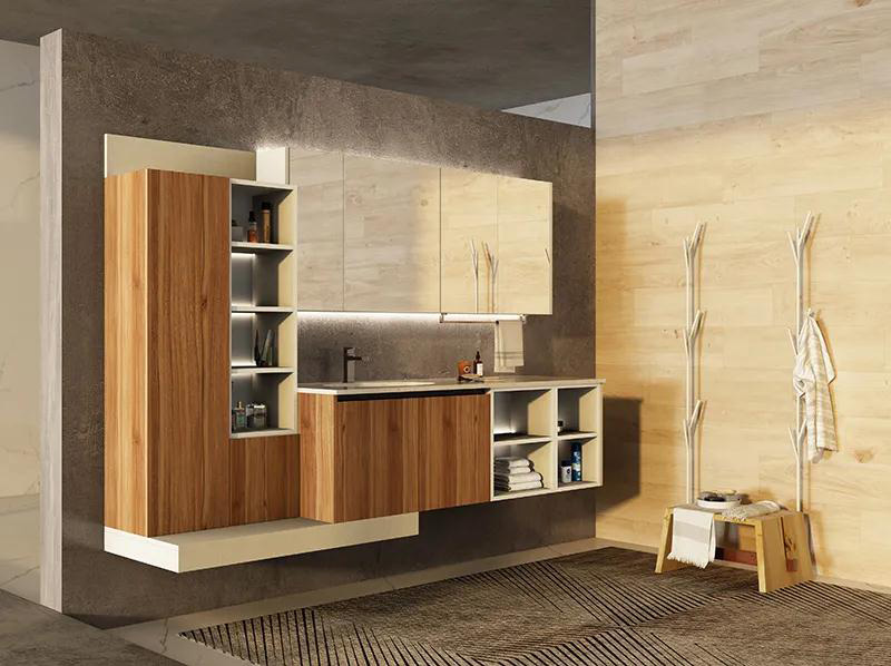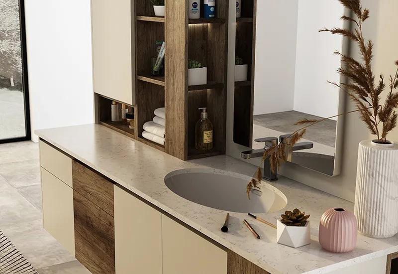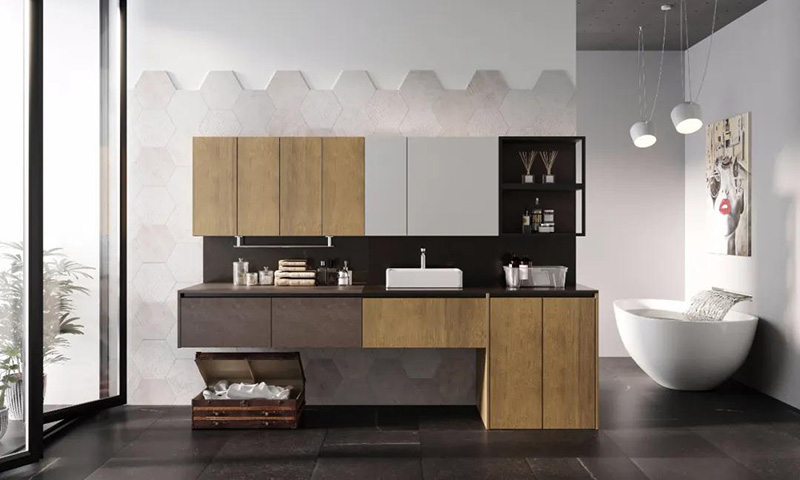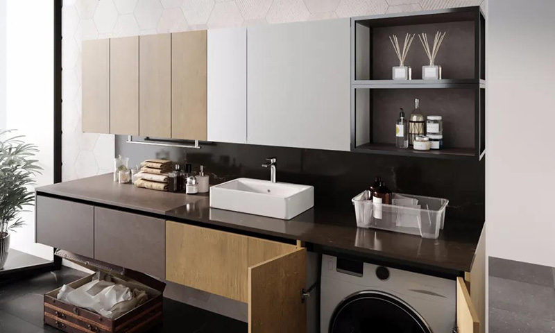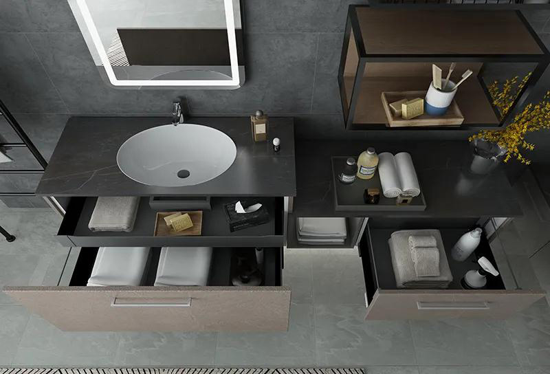 盆臺下方多層次的設計,內置抽屜,充分利用空間擴容,使收納更加井然有序,開合盡顯收納本事。