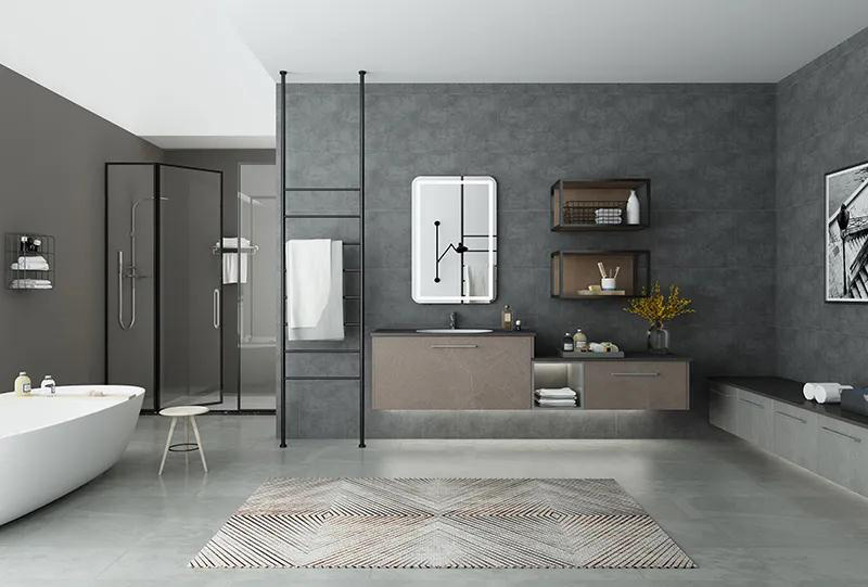 工業風以多以金屬、水泥灰、鐵架等元素構成,給人冷靜炫酷的質感,在浴室空間里使用工業風,質感從內而外的展現出來。