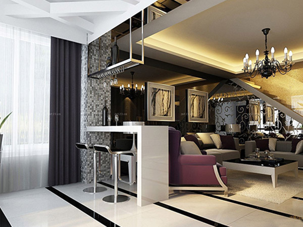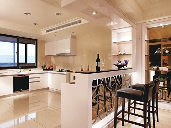 2、注意吧臺的設計風格。吧臺的設計風格最好要跟室內裝潢風格相協調一致,這樣才能更好的融入空間。雖然吧臺的位置沒有特定的標準,不過,設計師可以利用空間站的一些畸零空間來設計,這樣就可以充分利用空間。