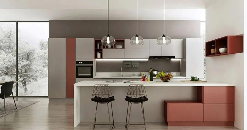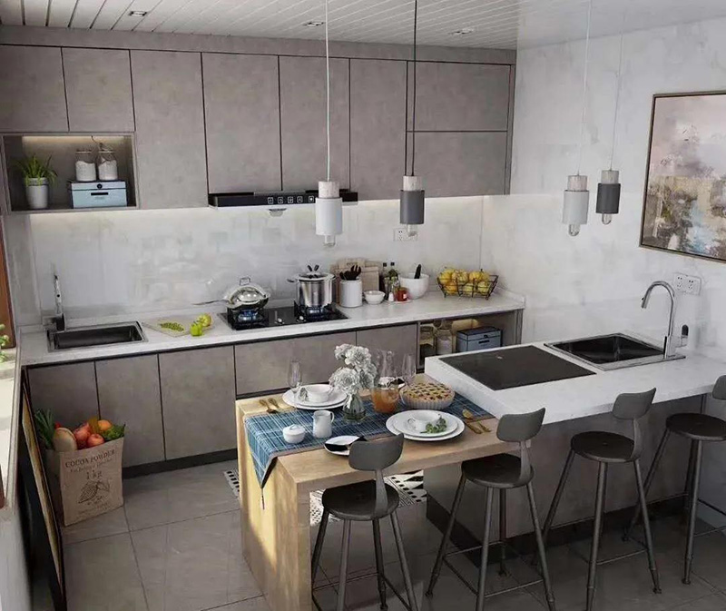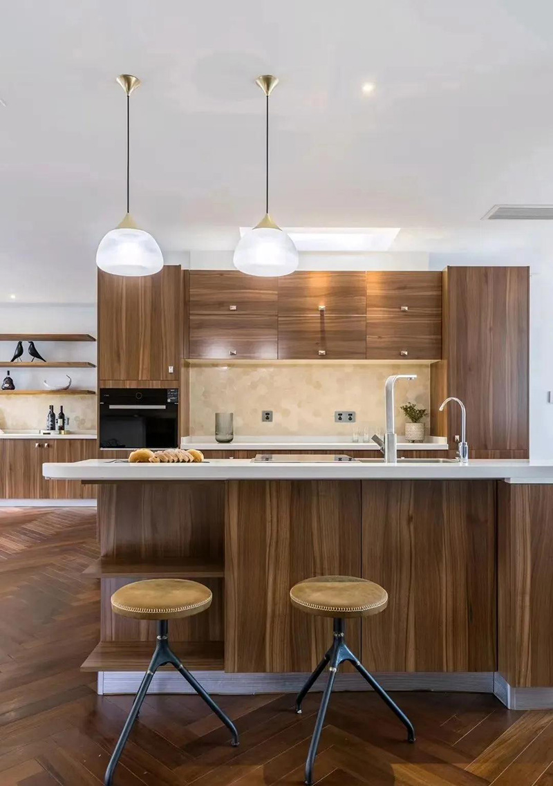 開放式廚房的打造,可以在空間的中間加一個島臺,整體更時尚的同時,島臺可以兼做餐桌,功能與顏值同時在線。