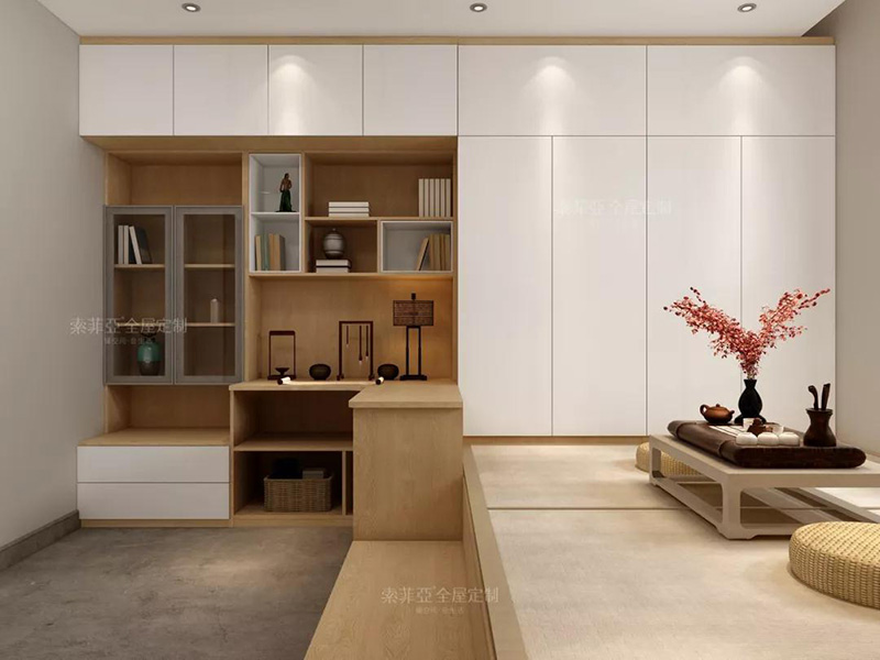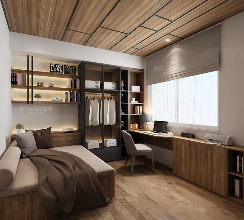還有一種做法是選用榻榻米床,可以隨時變成客房,給過來暫居的父母或拜訪的朋友使用。還能客製化和櫃子一體的書桌,來增加儲物空間。
