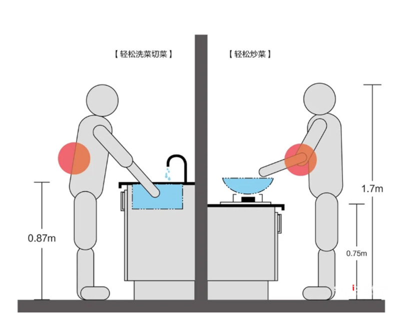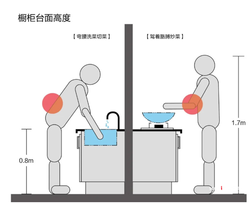 廚房用著不舒服,烹飪時腰酸背痛,很大部分原因是臺面的高度沒有設計好。
