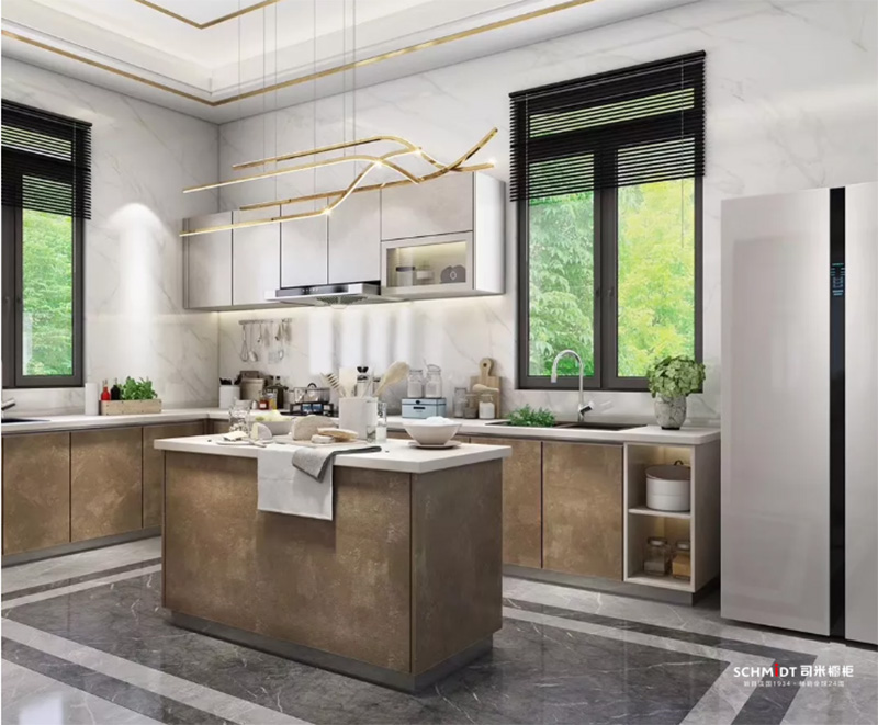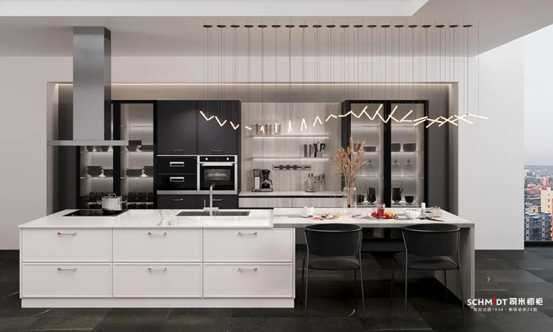 該布局根據以上四種基本形態演變而成,中央設置一個單獨的工作中心,活動操作圍繞這個“島”進行,開放式布局,打造社交廚房的不二選擇。