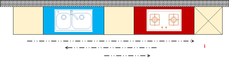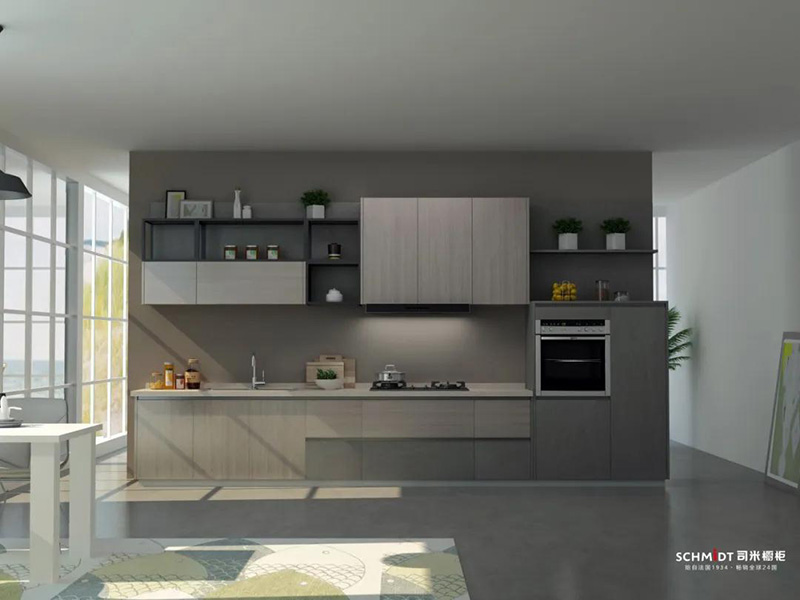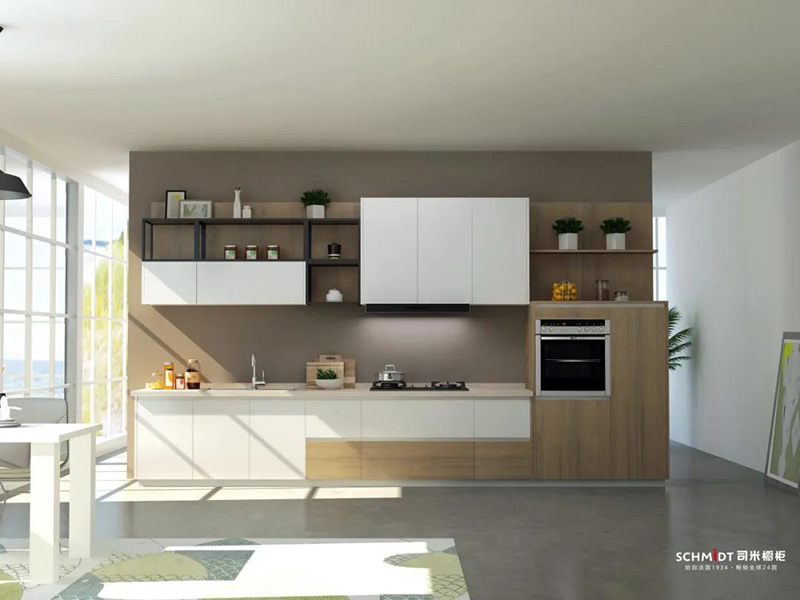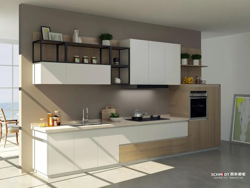 櫥櫃沿墻面一字排開,動線在一條直線上,空間劃分精煉清晰,節省空間,注重實用性和操作性。