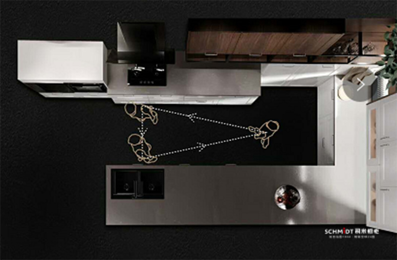 好用的廚房,動線一定得合理。廚房動線無非就是“取-洗-備-炒”,根據這個流程來有效規劃空間,可提高下廚的效率以及烹飪的流暢性。