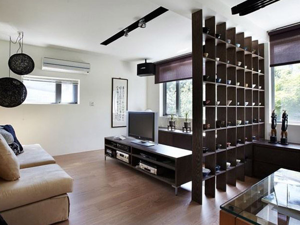 家具隔斷不僅能承擔家具功能,還能起到隔斷居室作用,是室內裝潢隔斷終最簡單的方式。比如沙發、裝飾櫃等,能夠推拉移動的書櫃或擱架最為方便將其放置在客廳邊緣,都能造成隔斷的效果。