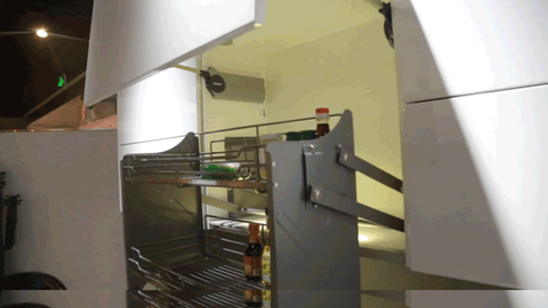小廚房也非常適合下拉拉籃的吊櫃,不僅最大化利用吊櫃空間,也讓拿取更加方便。