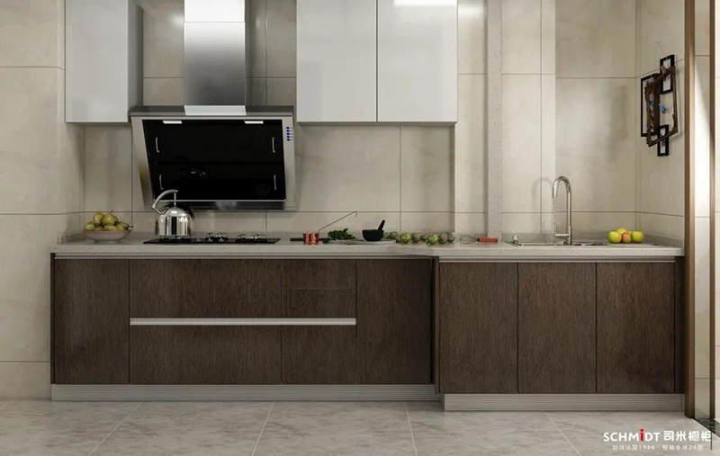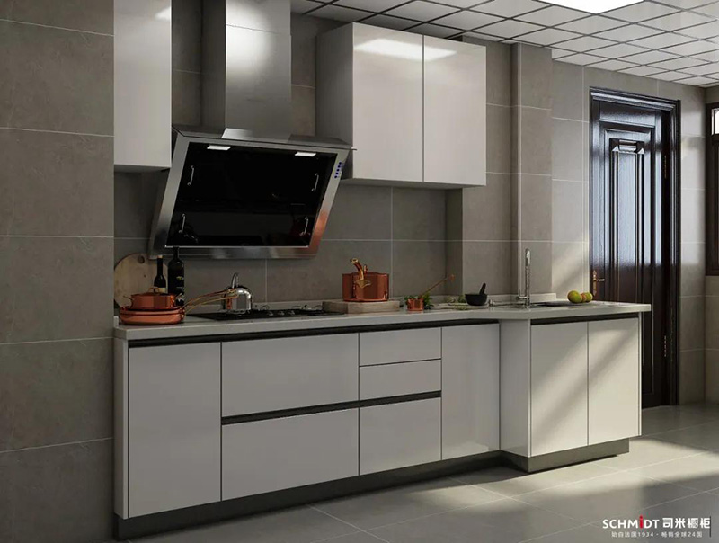 I型布局也是小戶型廚房不錯的選擇,在空間面積小的情況下,將水槽和家電的位置設置在墻的同一面,結構簡單,操作起來比較順手,動線都在一條直線上,清理的時候也更加方便。