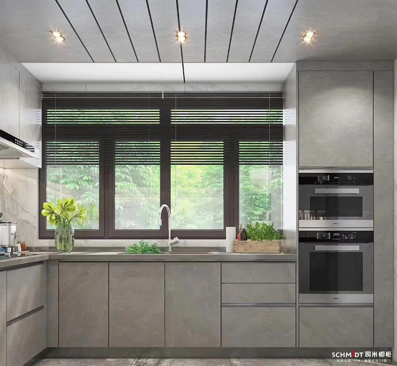 ❉有窗戶的L型廚房要注意將水槽放置在窗戶前面,在設計時將油煙機放在較長的一面,較短一面的臺面可預留廚電的位置。