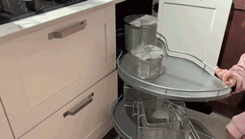 ❉L型廚房安裝開放式轉角櫃,能將轉角櫃的雞肋空間充分利用起來,榨干廚房每一寸空間。