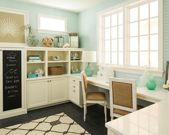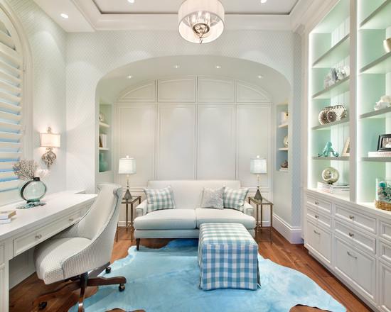 小編的話:白色的基調配以薄荷綠的點綴,散發著清新的沙灘風味。充足的空間讓書房同時可以容納諸多工藝品作為裝飾,襯托出主人的氣質。