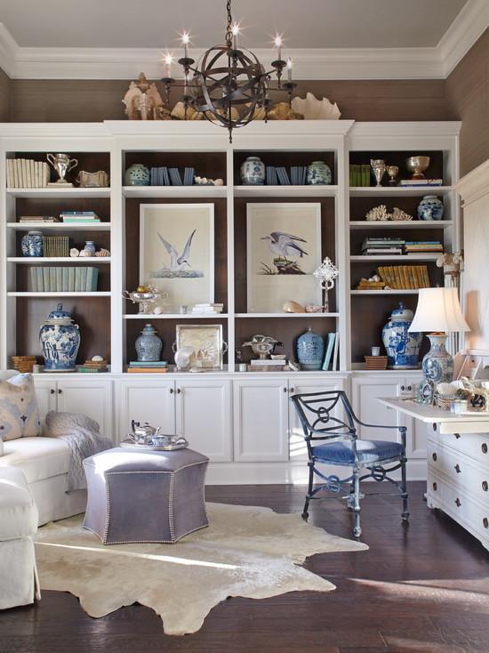 小編的話:這不僅是一間書房,也是瓷藝品的陳列館。鐵藝的吊頂帶給人手工的情感,中西混搭的女式書房。